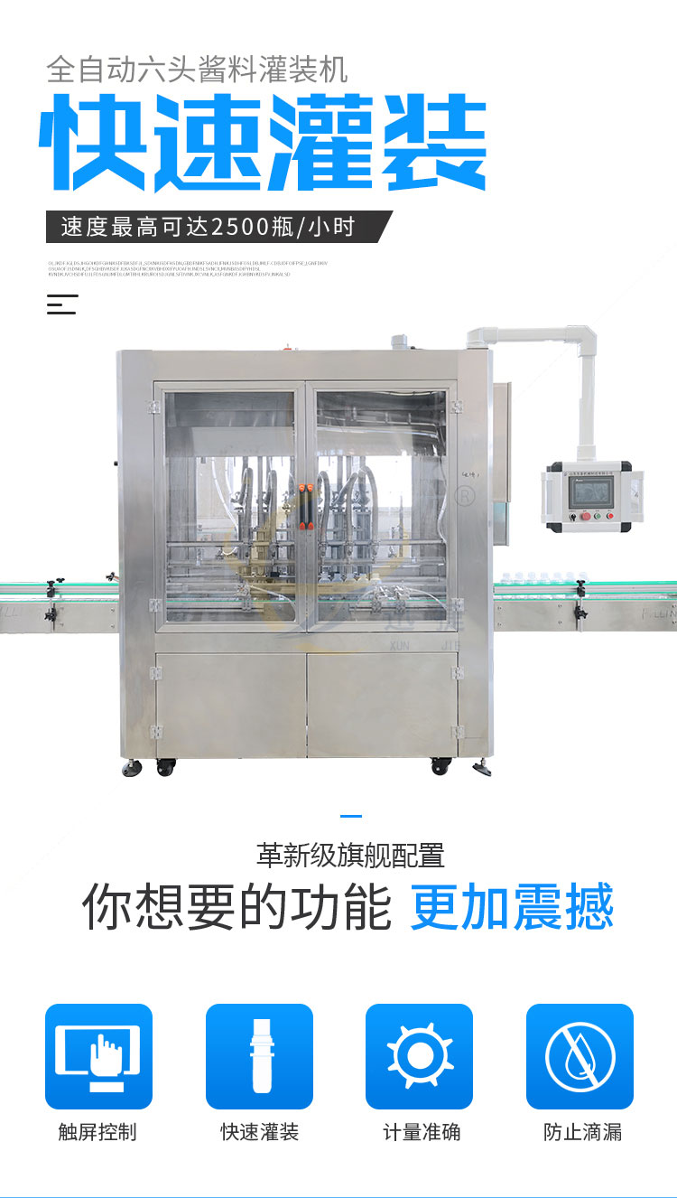 全自動醬汁灌裝機可實時根據(jù)不同產(chǎn)品做出不同的調(diào)整,操作方便,內(nèi)置各種配方一鍵保存讀取。傻瓜式操作界面。
