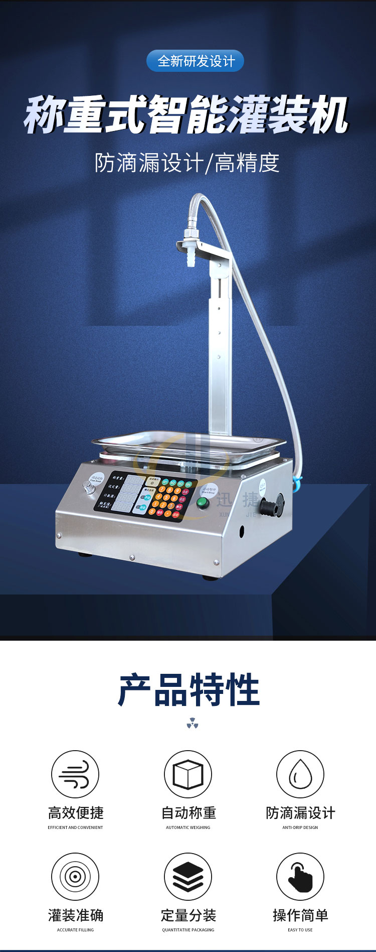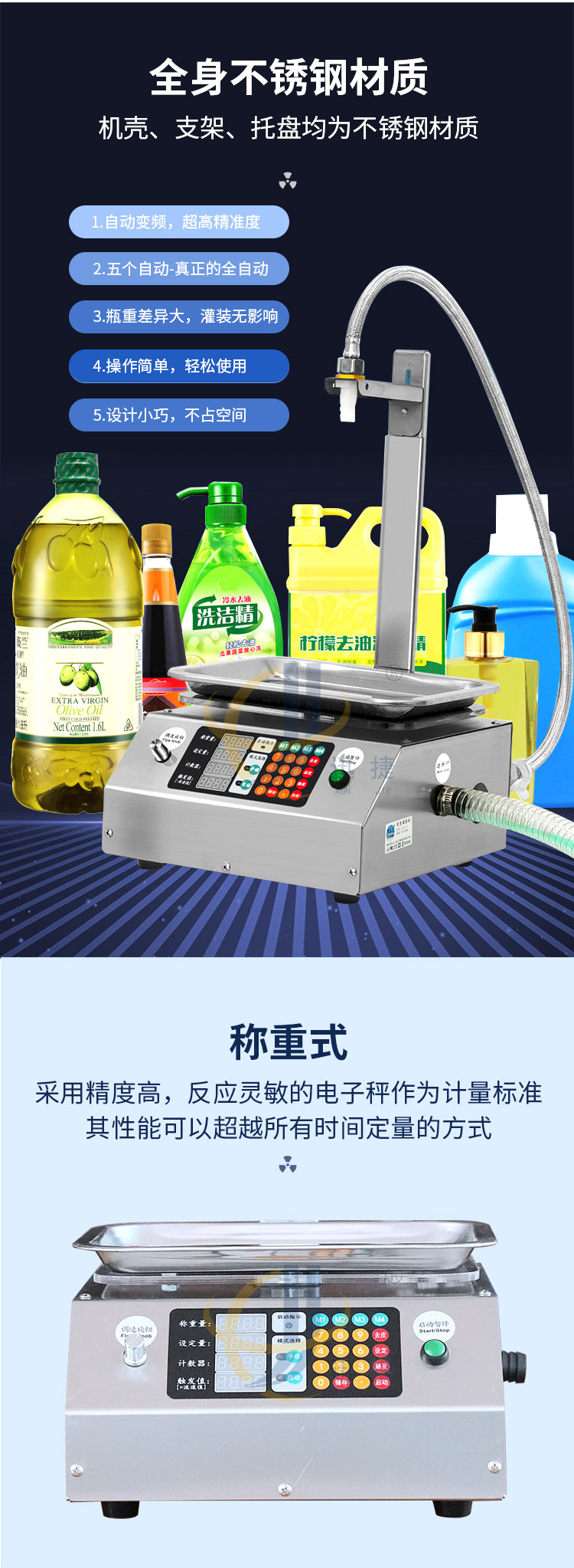 稱重式液體灌裝機適用于30g-15kg內(nèi)的各種常見液體灌裝。采用精度高,反應(yīng)靈敏的電子秤作為計量標(biāo)準(zhǔn)。其性能可以超越所有時間定量的方式。