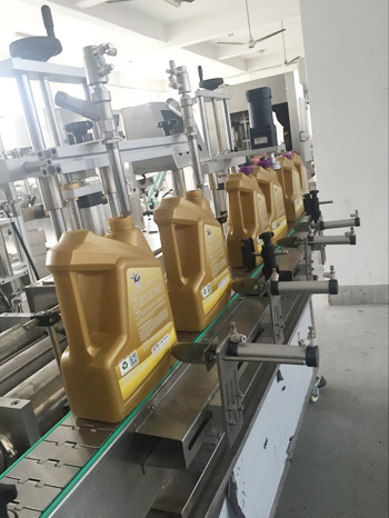 潤滑油灌裝旋蓋一體機(jī)為活塞式計量方式。計量范圍為1升-5升,離合式旋蓋結(jié)構(gòu),確保旋蓋合格率高,不傷蓋。本設(shè)備為灌裝旋蓋一體機(jī)