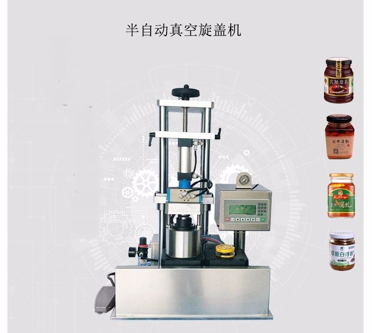 半自動辣椒醬真空旋蓋機顧名思義是旋蓋真空一體機,集抽真空旋蓋于一體。