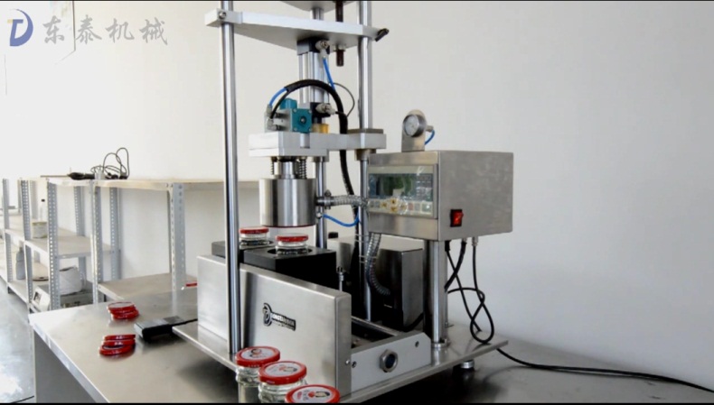 后,就是旋蓋機啦,這個就不用多說了,指的就是玻璃瓶馬口鐵蓋的旋緊。旋蓋機有很多稱呼:旋蓋機、上蓋機、擰蓋機,封口機,封蓋機等等,都是同一意思。